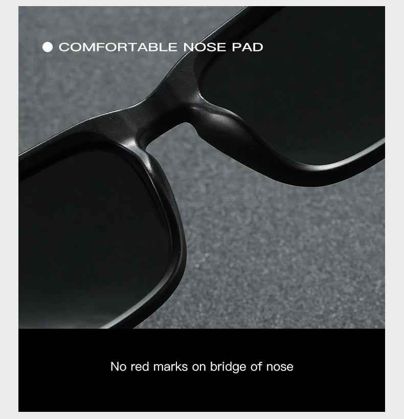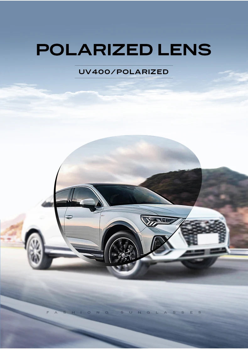 - UV400 Polarized Lenses — Blocks 100% UVA and UVB rays. Reduces glare from water, roads, and reflective surfaces