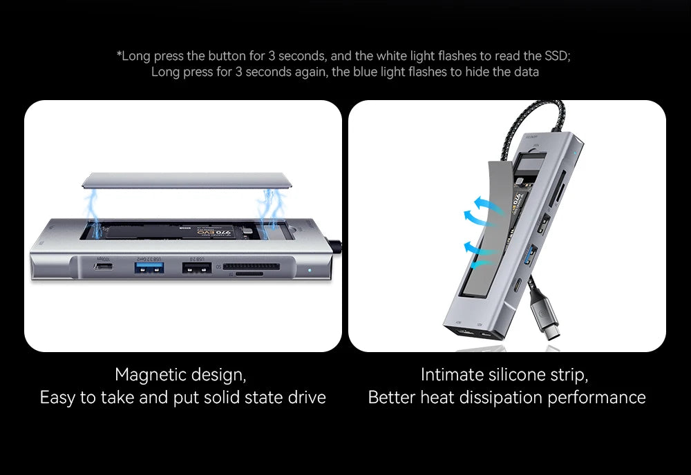 For Designers & Creatives: Connect your 4K monitor, external hard drives, SD cards from your camera, and charge your MacBook Pro - all through one sleek hub. The built-in SSD slot means you can carry your entire project library without cloud dependency.